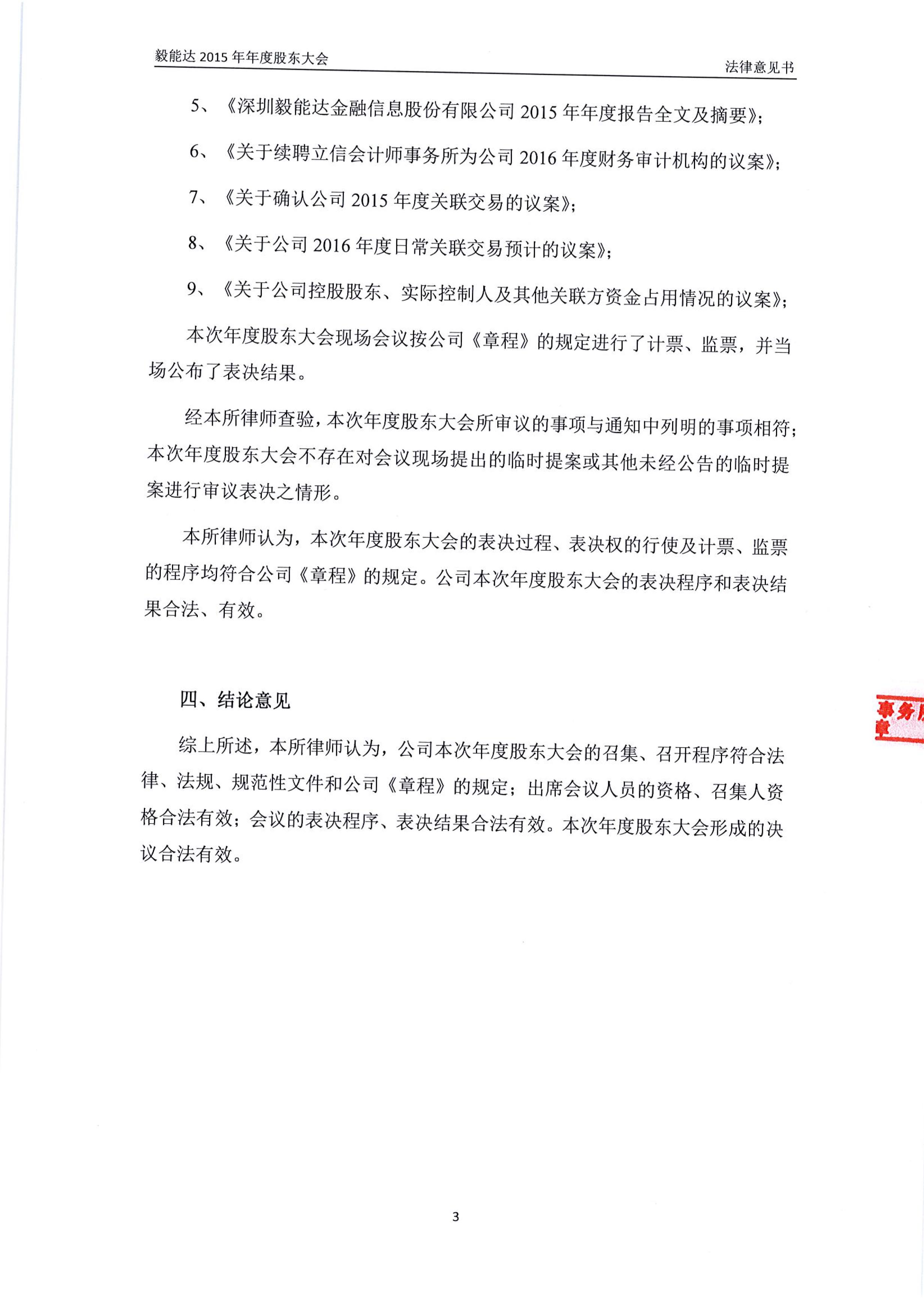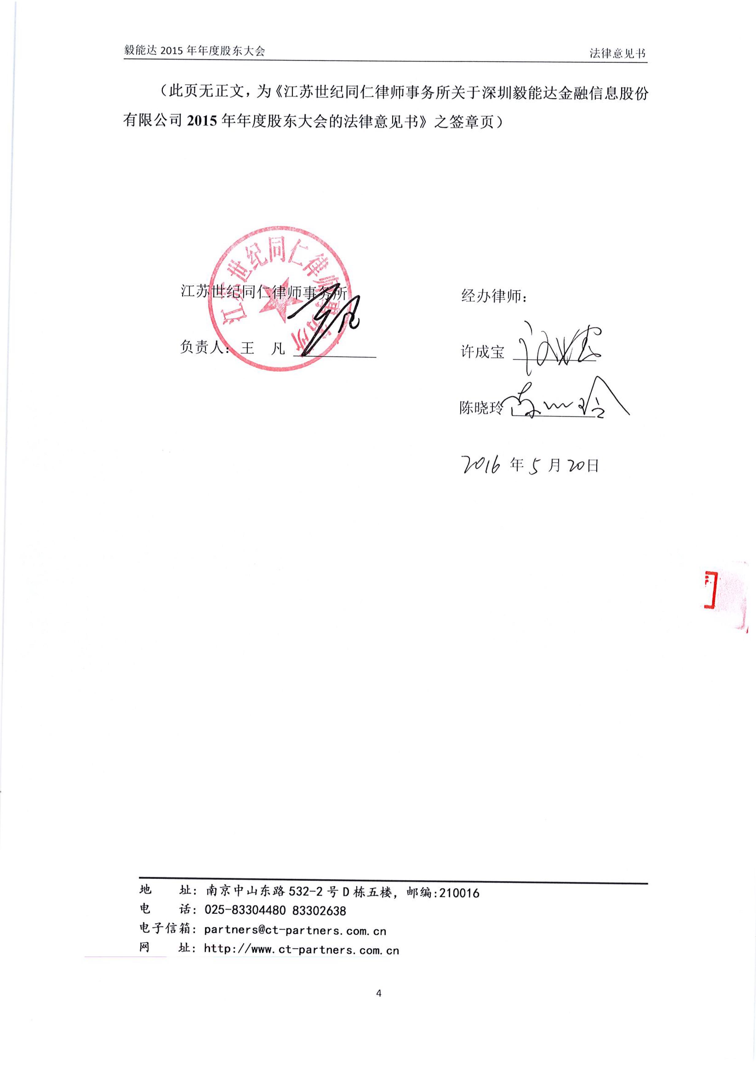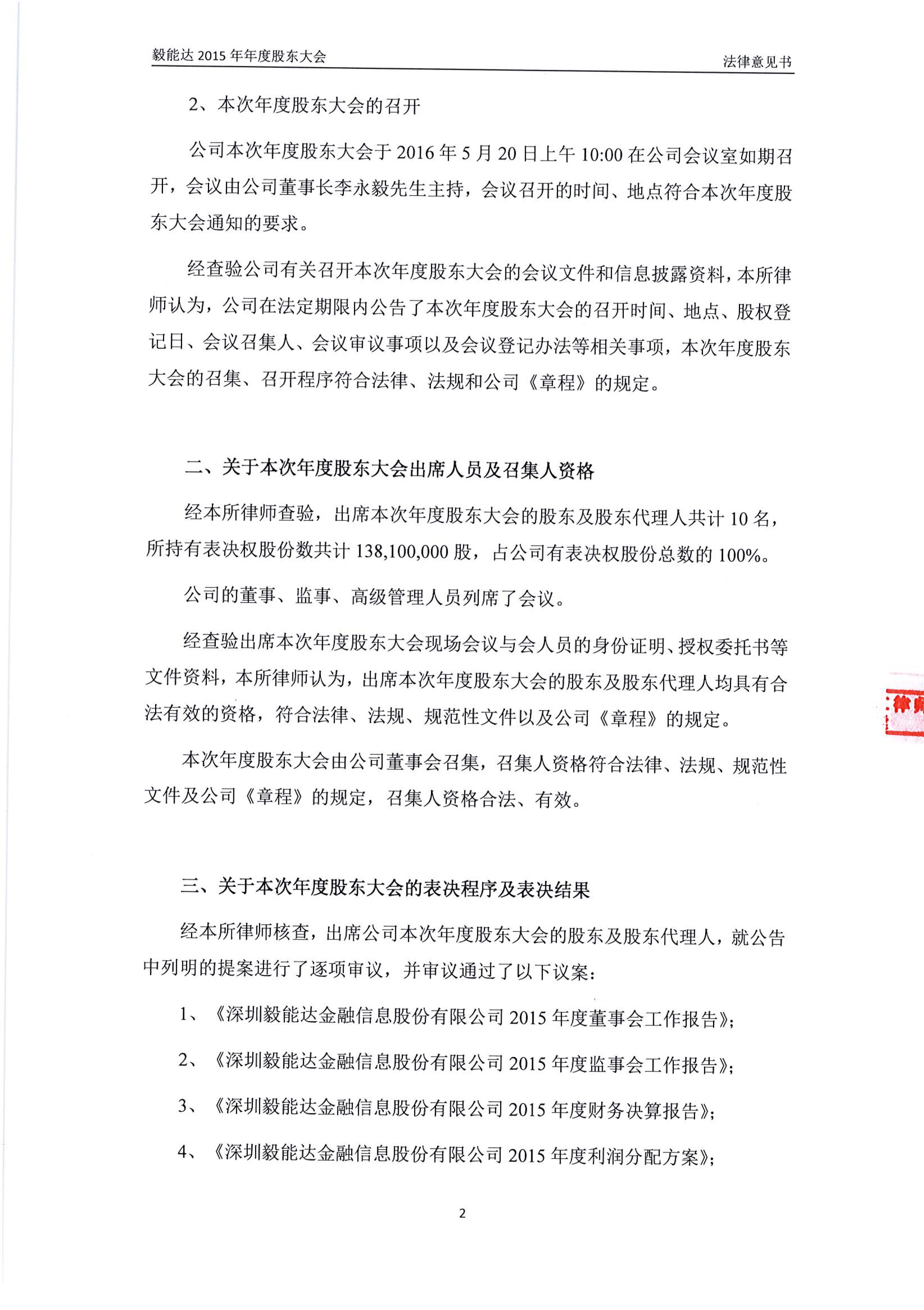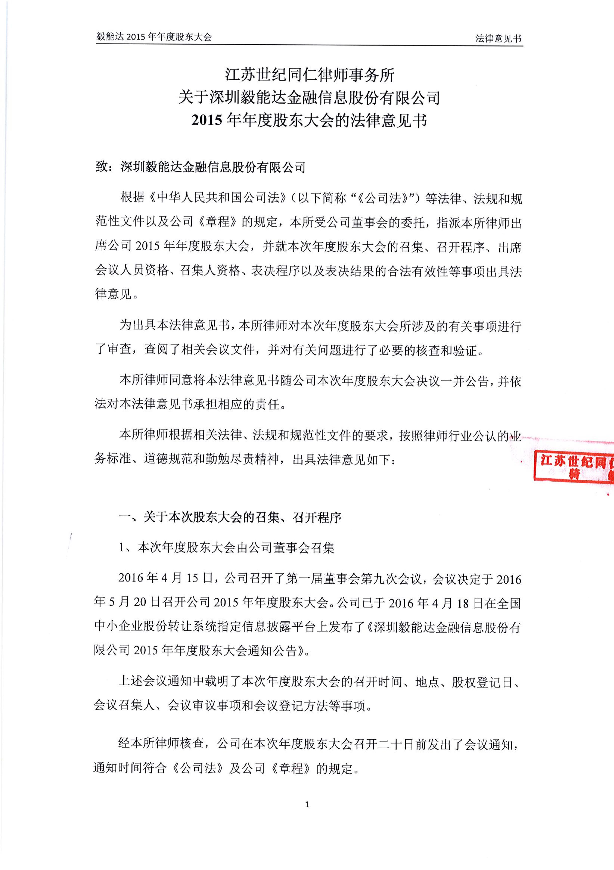 2015年年度股東大會法律意見書