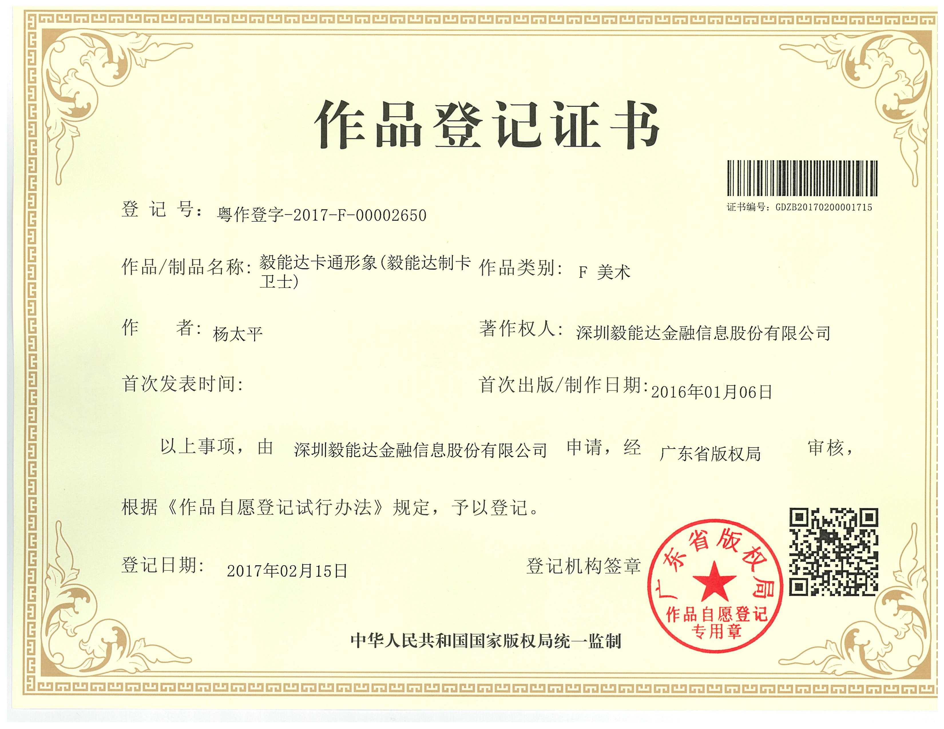 奔走相告!毅能達卡通形象版權已正式審核登記
