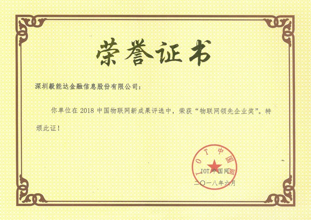 近日, 2018年中國物聯網新成果年度評選正式落下帷幕。最終,深圳毅能達金融信息股份有限公司(以下簡稱“毅能達”)和旗下子公司深圳市慧毅能達智能卡技術有限公司(以下簡稱“慧毅能達”)分別斬獲“物聯網領先企業獎”和“電子標簽及智能終端創新產品獎”。