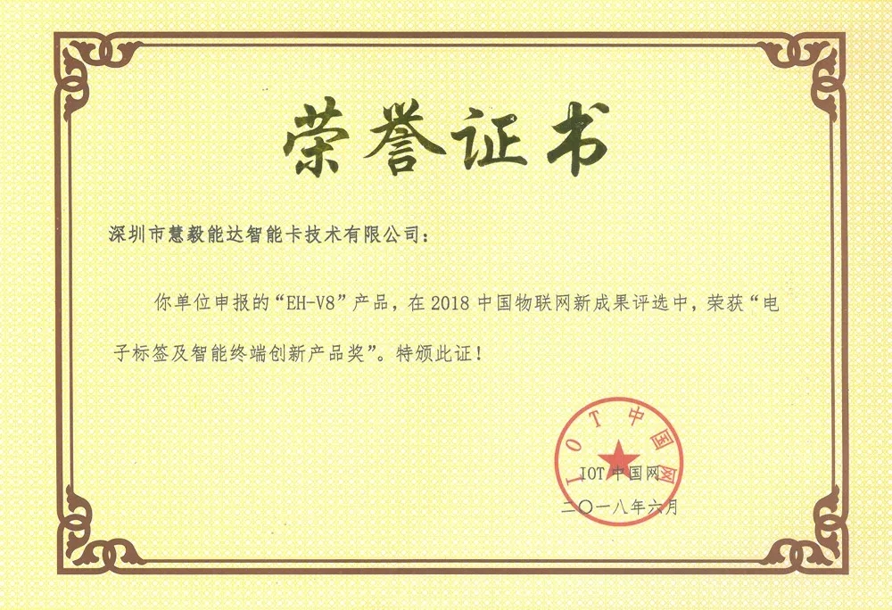 據了解,在此次2018年中國物聯網新成果年度評選中,毅能達推出的新產品EH-V8智能手持終端就榮獲了“電子標簽及智能終端創新產品獎”。