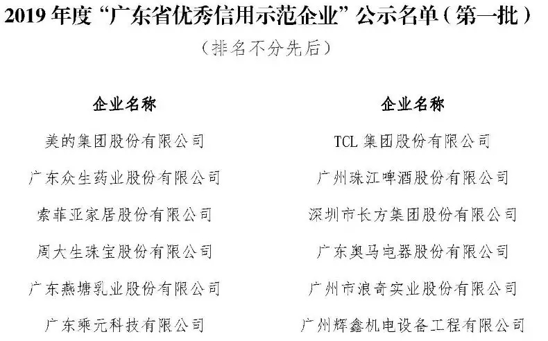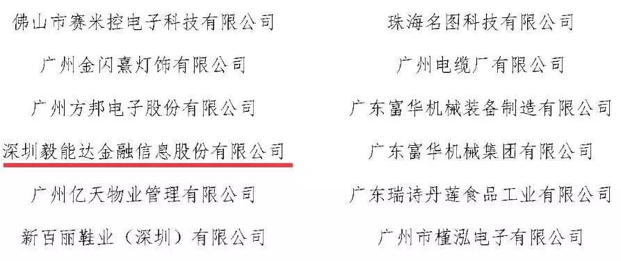 毅能達入選2019年度“廣東省優(yōu)秀信用示范企業(yè)”