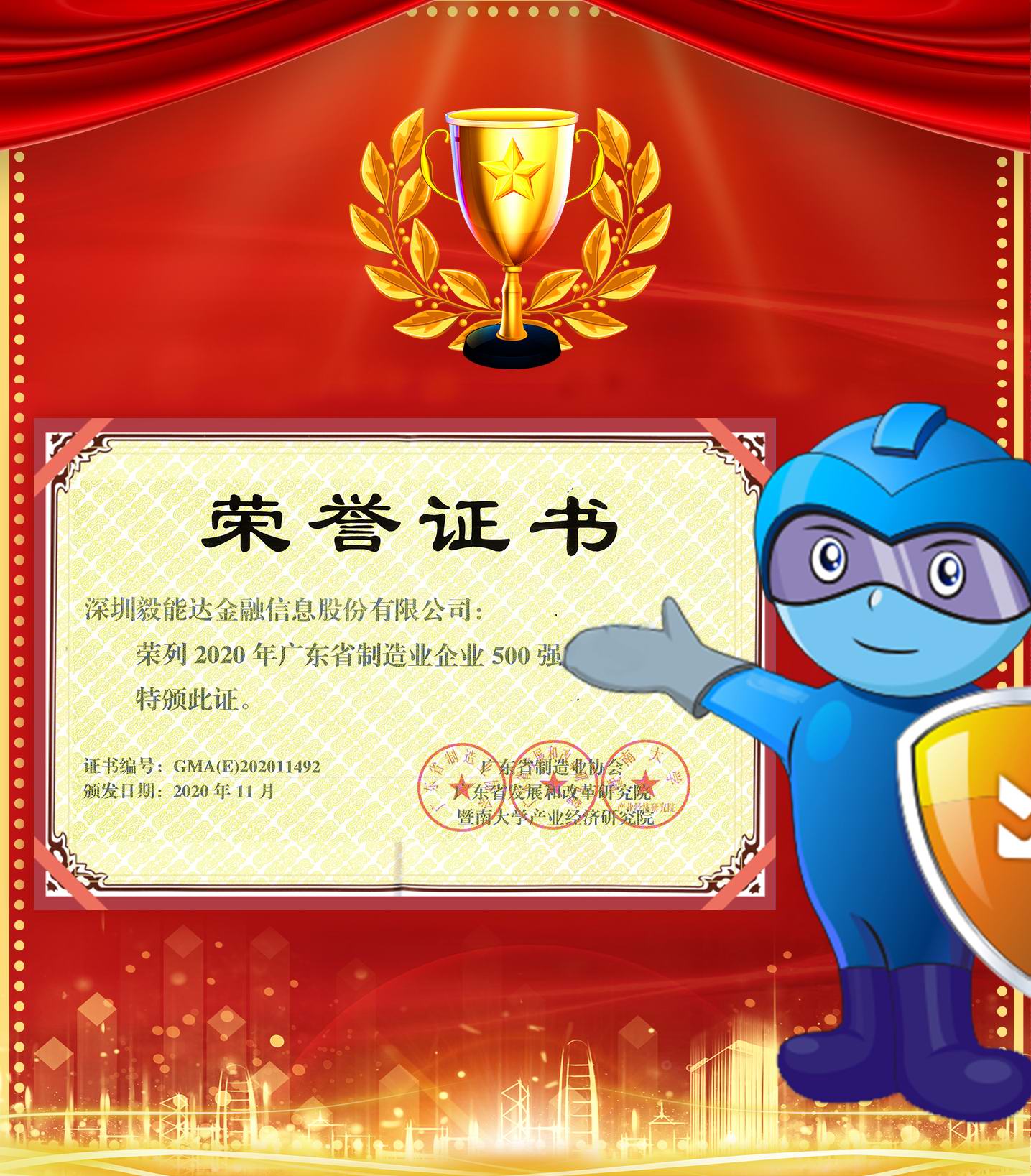 11月26日,以“新發展格局下廣東制造業的高質量發展”為主題的2020廣東省制造業發展年會暨廣東省制造業500強企業峰會在中山隆重舉行,政府領導、專家學者、優秀企業代表等共聚一堂,共敘友情,共話廣東制造發展新趨勢,會上同時發布了2020廣東省制造業500強企業名單,深圳毅能達金融信息股份有限公司(以下簡稱“毅能達”)再次受邀出席此次峰會。
