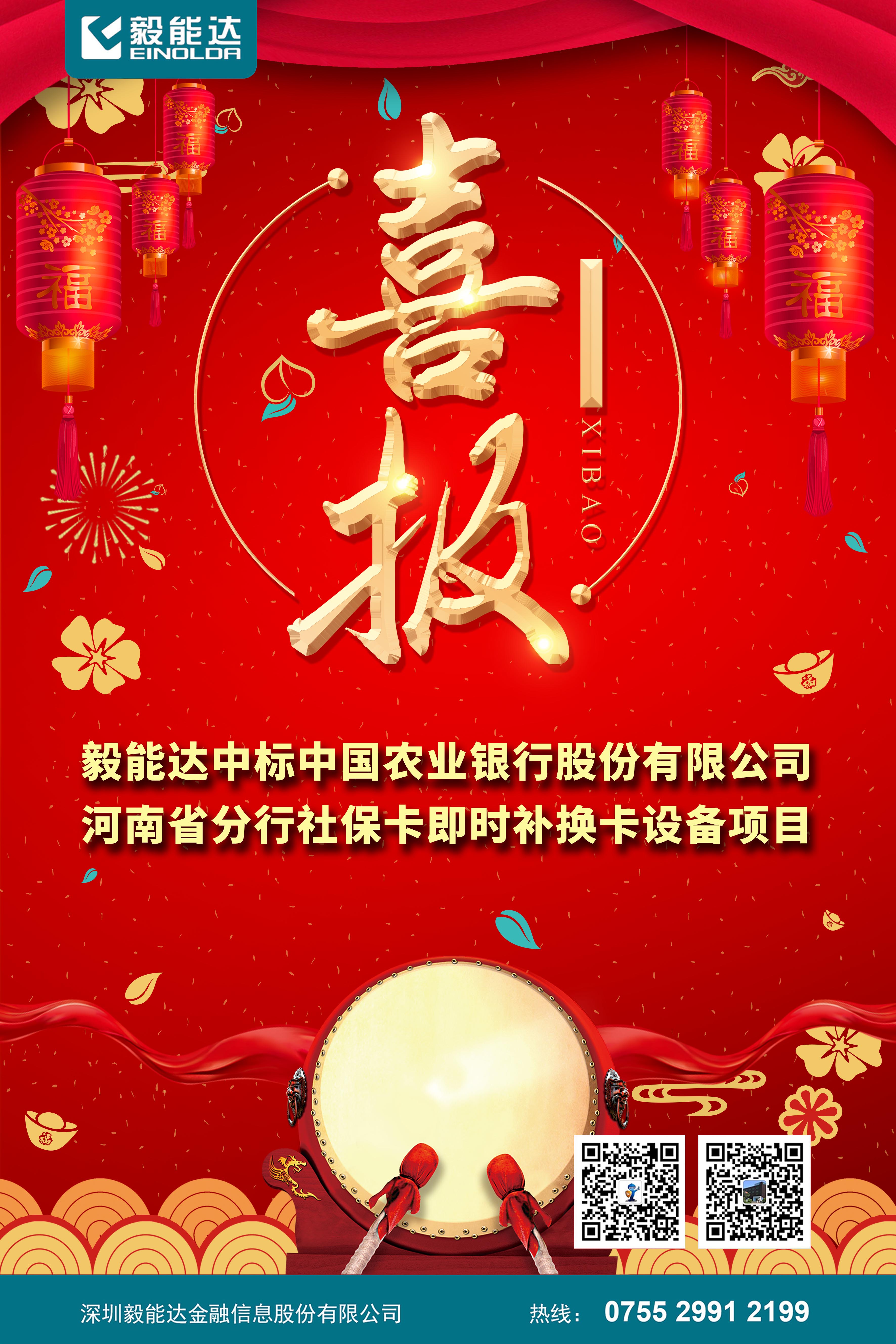 喜報!毅能達中標中國農業銀行股份有限公司河南省分行社保卡即時補換卡設備項目