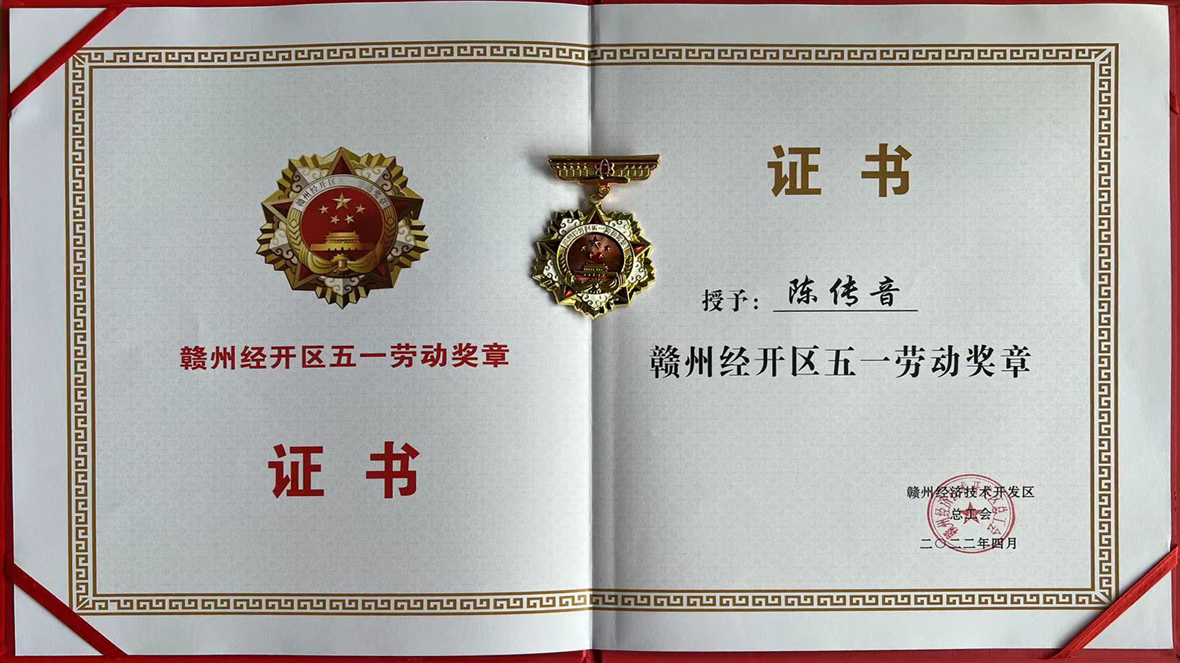 祝賀贛州毅能達員工榮獲贛州市經開區五一勞動獎章